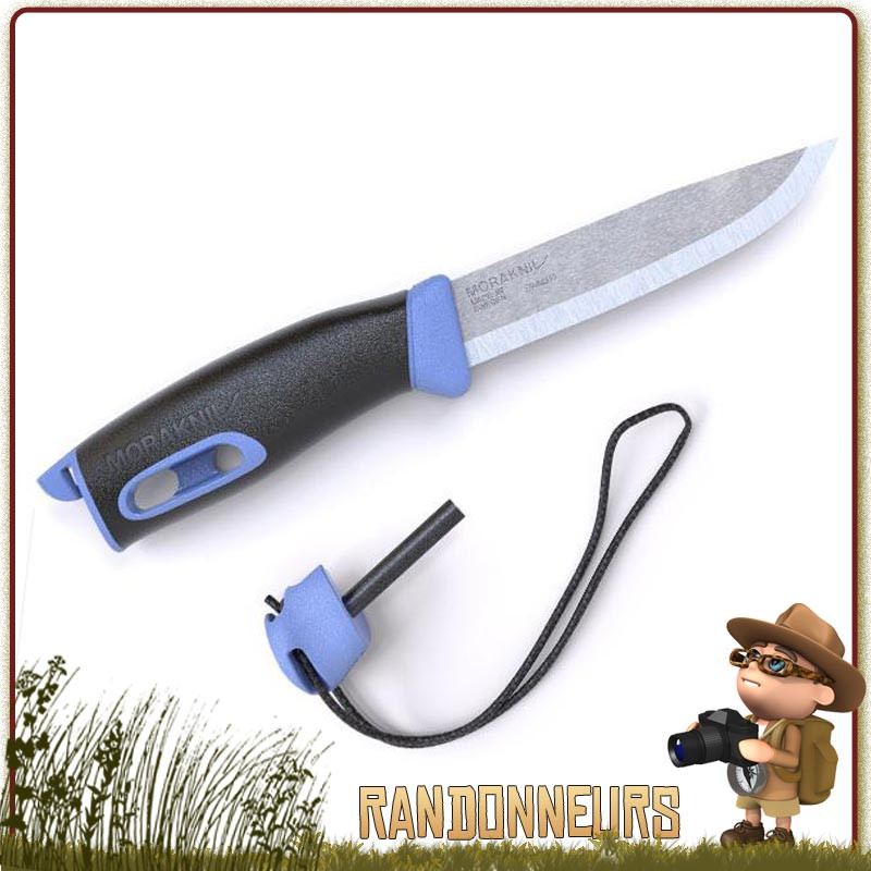 Couteau Bushcraft MORA Companion Spark Bleu avec étui et passant ceinture en plastique rigide, Pierre à feu et lanyard