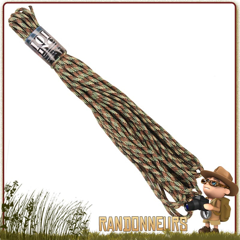 Corde Nylon 7mm x15m Camo 101 Inc - Corde Utilitaire Militaire en nylon de diamètre 7 mm et longueur 15 mètres CAMO pour une solidité à toute épreuve qui vous sera utile pour tous vos besoins terrain que se soit en mode survie, bushcraft ou sur votre campement militaire ou plus simplement au camping