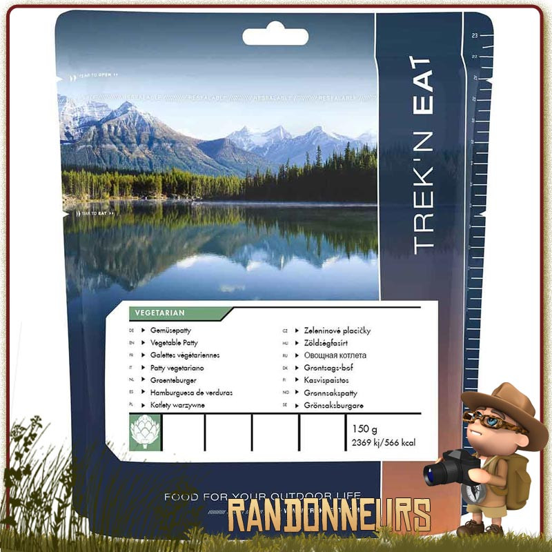 TreknEat le spécialiste des repas lyophilisé propose un plat végétarien "GALETTES VEGETARIENNES TREK'N EAT" lyophilisé équilibré pour le randonneur