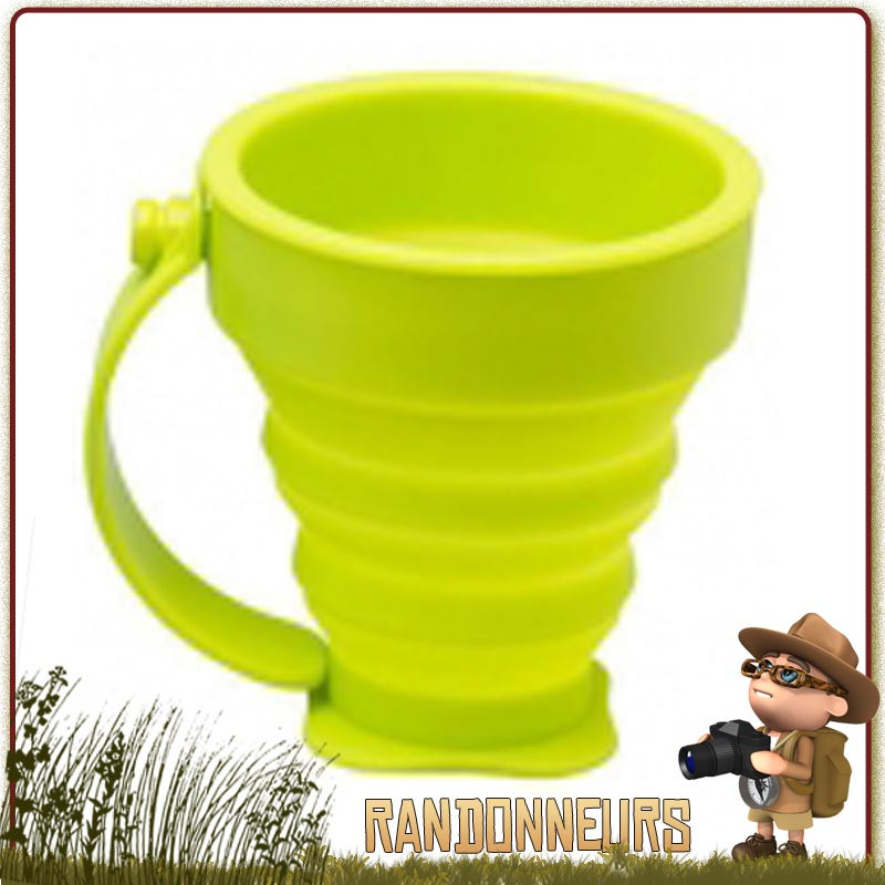Tasse Silicone Pliable avec anse 20 cl CAO- Tasse pliante en silicone alimentaire, 20 cl, ultra légère et très pratique pour les voyages et la randonnée légère. Pliante en accordéon avec une anse rétractable. Tasse de camping très pratique avec un encombrement minimal pour la randonnée légère